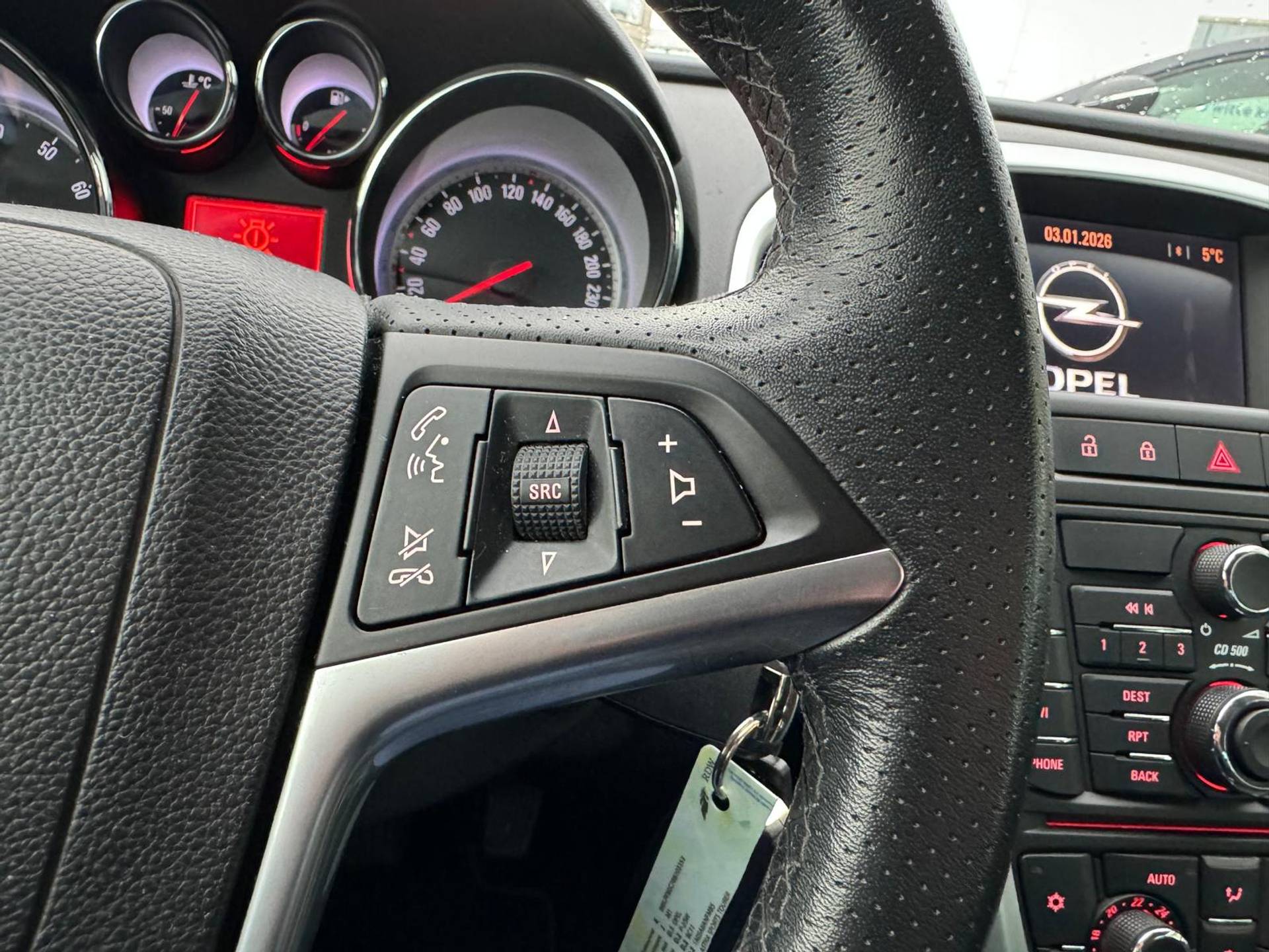 Gemakkelijk en veilig is bediening voor het audiosysteem met knoppen op het stuur. Bij de luxe van deze auto hoort ook electronic climate control. Het luxeniveau in deze Opel is niet alleen gericht op comfort, maar ook op uw veiligheid. Tal van sensoren helpen u om de omgeving in de gaten te houden. De automatisch inschakelbare verlichting zorgt dat automatisch de verlichting wordt ingeschakeld als het donker wordt, wat bijvoorbeeld in tunnels erg handig is. En de regensensor zet de ruitenwissers aan zonder dat u eraan hoeft te denken. Ook fijn als u op de voorgeschreven snelheid wilt blijven: de cruise control. En deze auto heeft ook sportstuurwiel, automatisch dimmende binnenspiegel, boordcomputer en lederen versnellingspook als standaard uitrusting.